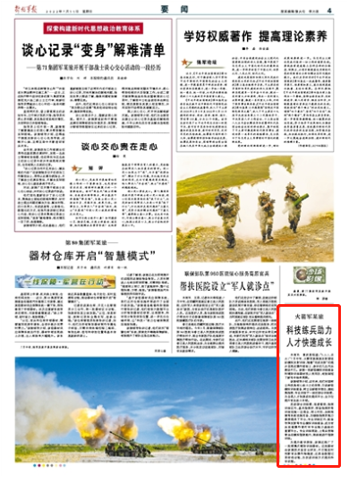 该旅领导介绍,近年来,他们牢固树立科技是核心战斗力的思想,引进新型模拟训练装备,树立全新教学理念,建起集指挥、专业训练于一体的综合训练楼,为各类人才快速成长提供平台,全方位提升官兵战斗本领。