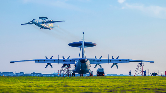 2022-06-16 07:10海军航空兵某旅组织战机进行大场次、高强度实弹射击训练,检验飞行员对海上目标精确打击能力。海军某驱逐舰支队组成舰艇编队赴某海域开展实战化攻防演练