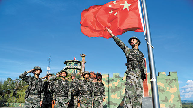 2020-08-18 08:50距离边境线不远,三角山边防连官兵策马扬鞭踏上巡逻路。他们身后,三角山哨所巍峨挺立,五星红旗分外耀眼。我们在战位报告丨扎根边关书写忠诚