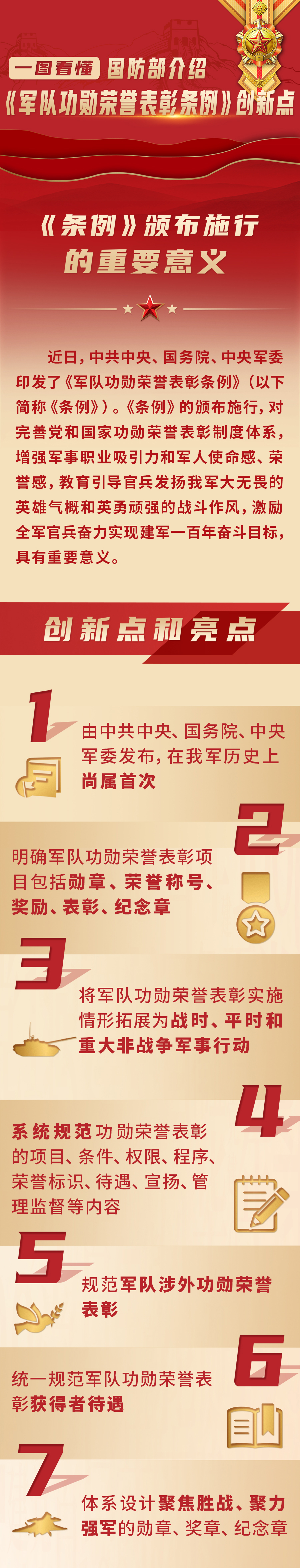 一图看懂!国防部介绍《军队功勋荣誉表彰条例》创新点
