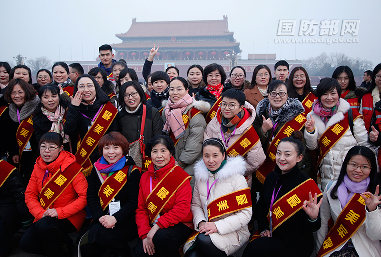 军嫂们在天安门广场合影留念。