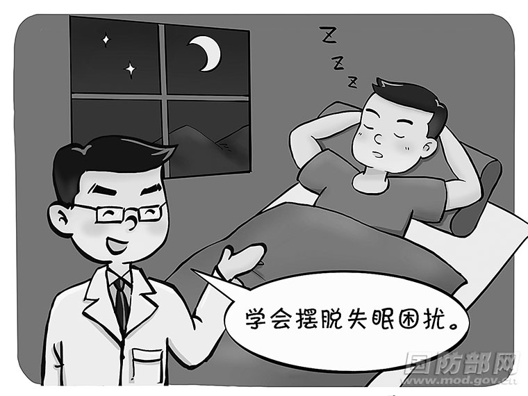 分析查找失眠诱因。解决失眠问题首先要知道自己为什么失眠。出现失眠情况的战友,可通过写日记的方式,把近期睡眠不好和睡眠较好的全天活动情况、饮食情况、有无刺激行为事件、睡前在想什么、睡眠不好时的行为表现等全部写出来。通过对比分析,找出自己急性失眠的诱因。也可在夜深人静时和内心对话,找到影响睡眠的心理因素,逐渐释怀后进入正常睡眠。