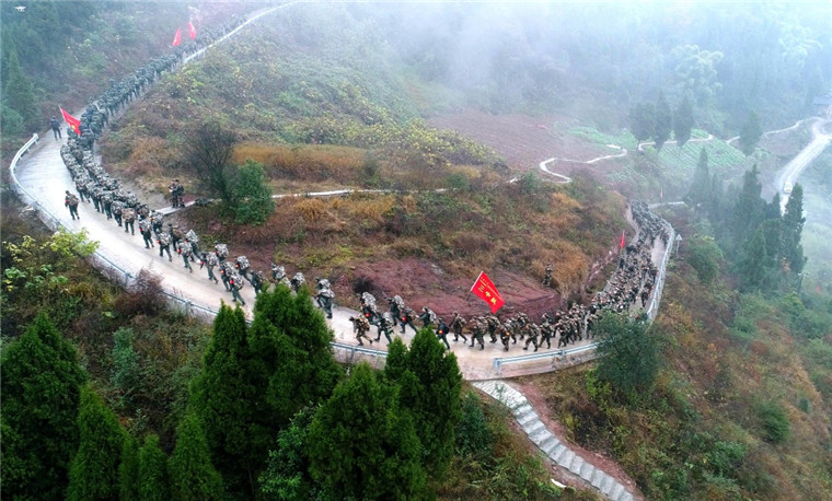 武警重庆总队官兵进行冬季野营拉练(1月3日摄)。新华社发(曹峰 摄)