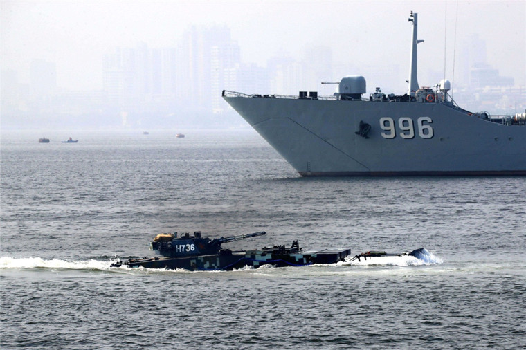 南海之滨,云飞浪卷。新型战舰,昂然列阵;装甲战车,蓄势待发。
