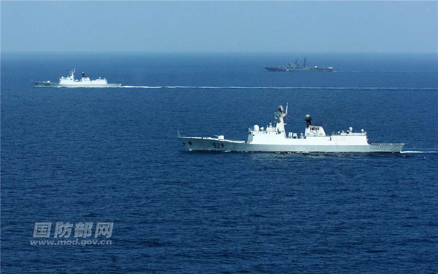中俄海军联合护航。