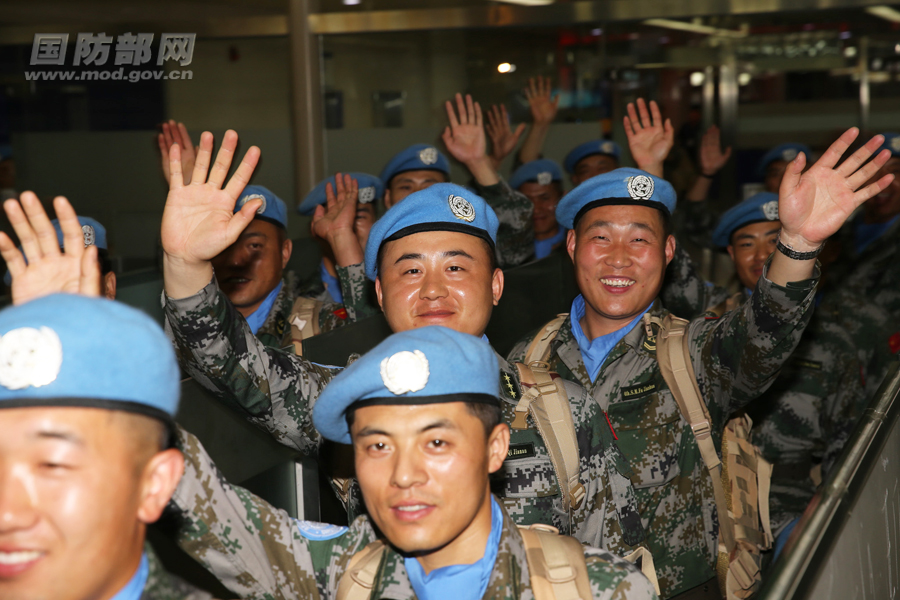 中国第六批赴马里维和官兵通过安检通道。