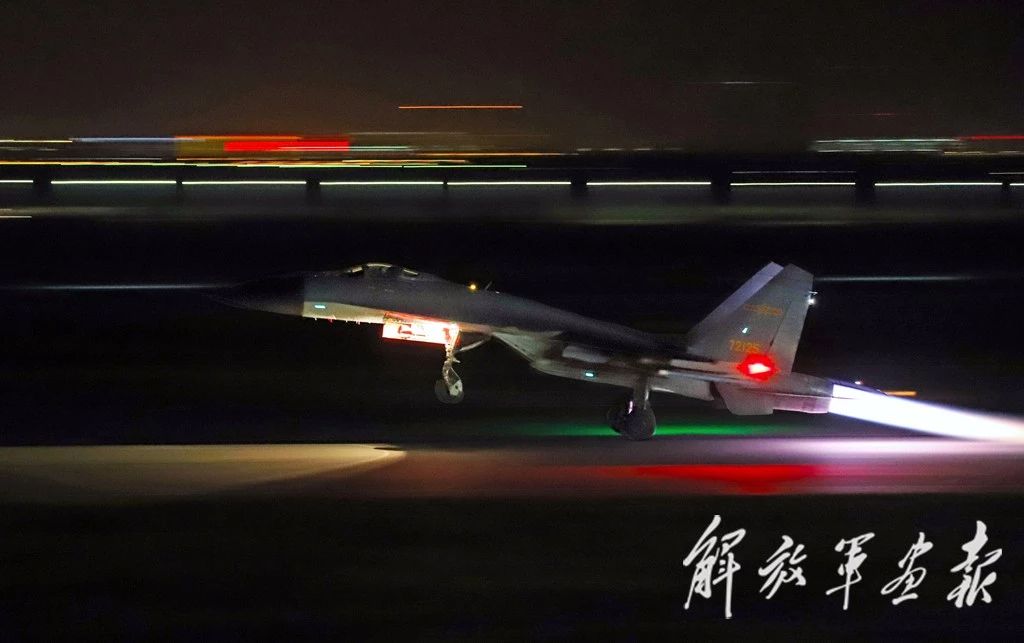 夜幕下,红方战机加力升空,与蓝方展开夜战。