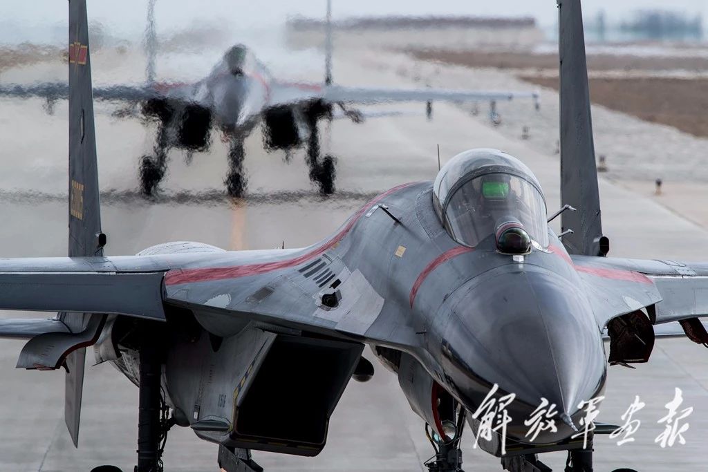 蓝方战机依次滑向起飞线,准备升空对抗。