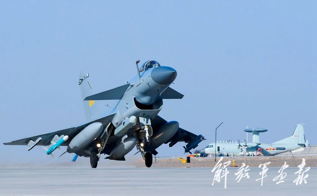 蓝方多架战机编队起飞,迅速抵达“战场”,对红方战机实施拦截。
