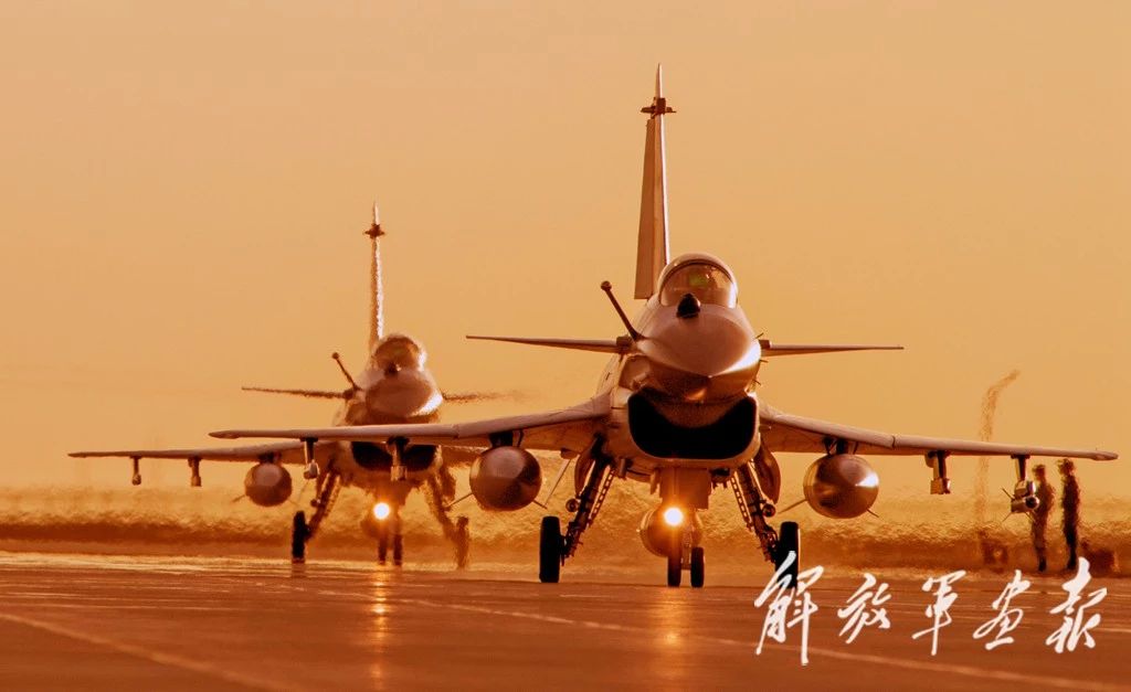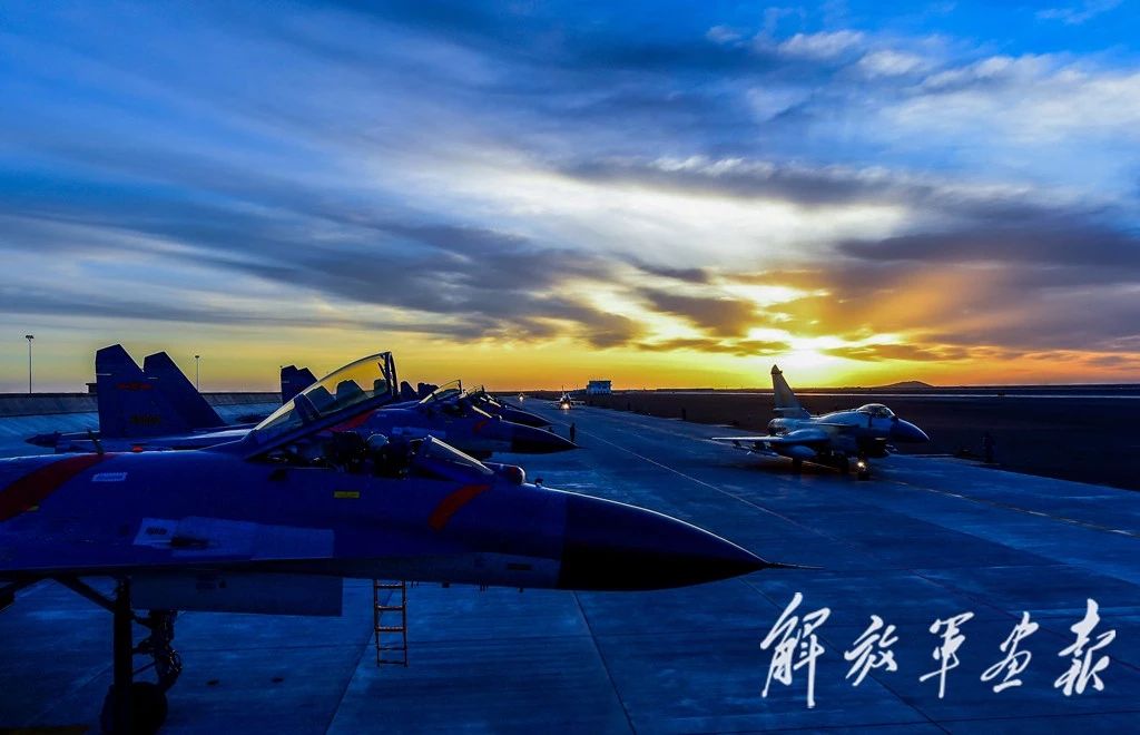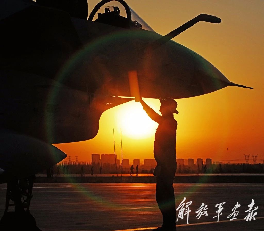 太阳初升,对抗即将打响,红方机务人员快速准备战机。