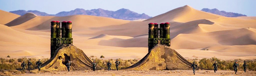 防空导弹严阵以待,随时准备拦截打击红方突袭战机。