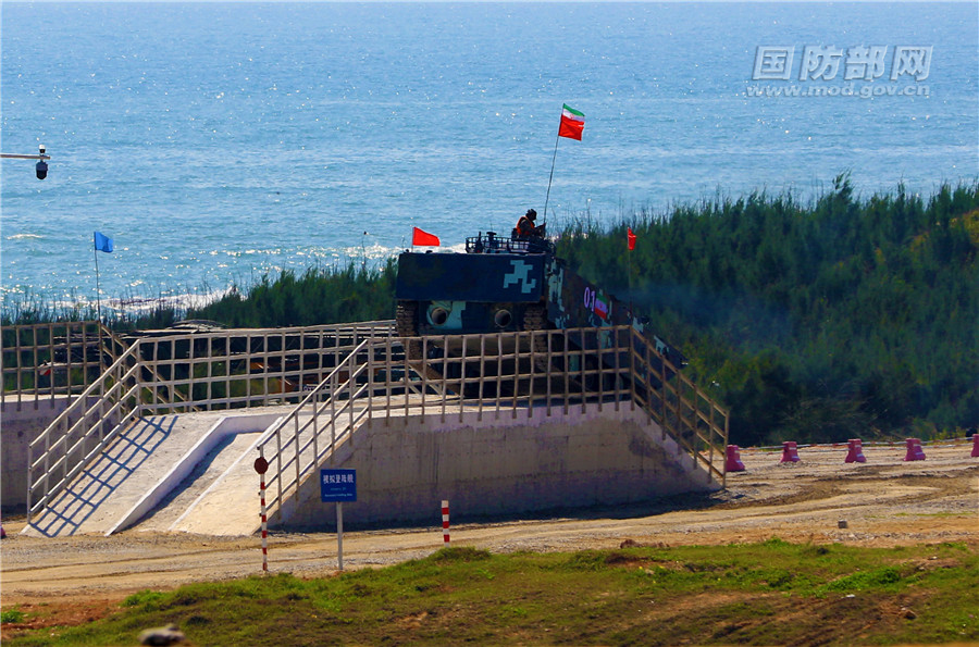 伊朗队通过模拟登陆舰障碍。尚文斌 摄