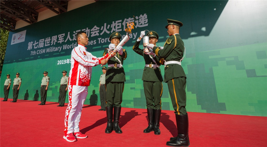 第七届世界军人运动会火炬传递活动第二站在“开国大典红一师”举行