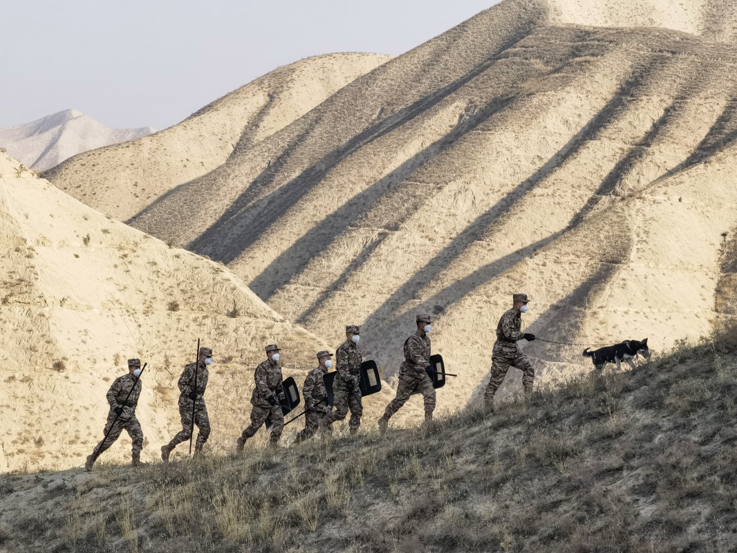 1月21日,武警甘肃总队白银支队某单独执勤点官兵在深山巡逻执勤。