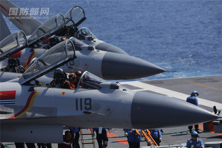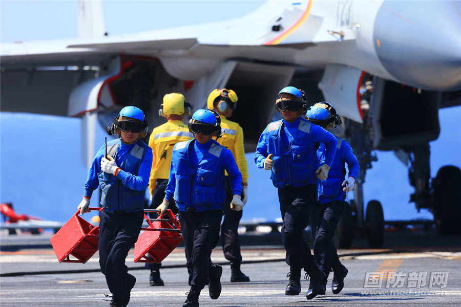 战机准备起飞前相关人员撤离。张雷 摄