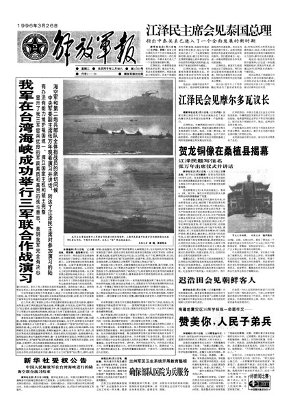 1996年3月8日-25日,为显示中国人民完全有决心、有办法、有能力维护祖国统一,震慑“台独”势力,我军向东海、南海进行发射导弹训练,并在东海、南海进行海空实弹演习和在台湾海峡进行陆海空军联合演习。2017年12月11日,中国空军开展了例行性常态化体系远洋训练,出动了轰-6K、苏-30、歼-11和侦察机、预警机、加油机等多型多架战机,飞越宫古海峡、巴士海峡,实施了“绕岛巡航”等训练课题,提升了远洋机动能力,检验了远洋实战能力。
