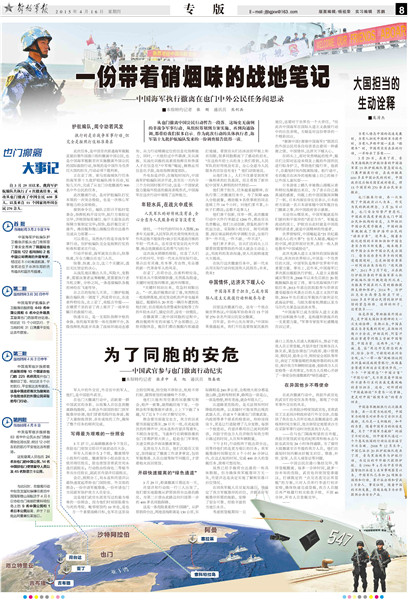 2011年2月22日-3月5日,因利比亚国内形势发生重大变化,中国政府分批组织中国在利比亚人员(包括港澳台同胞)35860人安全有序撤离。这是新中国成立以来最大规模的有组织撤离海外中国公民行动。2015年3月29日,正在亚丁湾索马里海域执行护航任务的中国海军护航编队临沂舰搭载首批122名中国公民,从也门亚丁港安全撤离。至4月7日,共从也门撤出中国公民613人,并协助来自15个国家的279名外国公民安全撤离。