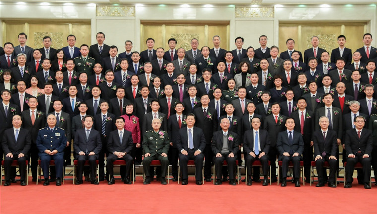 1月8日,2018年度国家科学技术奖励大会在北京人民大会堂隆重举行。会前,党和国家领导人习近平、李克强、王沪宁、韩正等会见获奖代表并同大家合影留念。新华社记者 谢环驰 摄