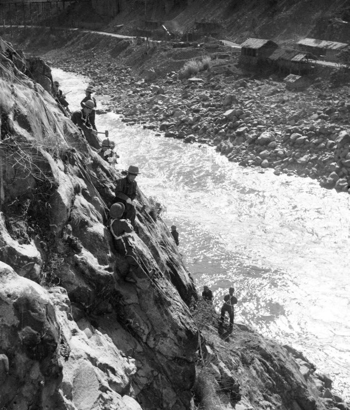 机械无法施展,一切只能靠人工。战士们用铁锤、钢钎和铁锹劈开悬崖峭壁,降服险川大河。施工第一年,就有超过2000名战士和民工献出了生命。
