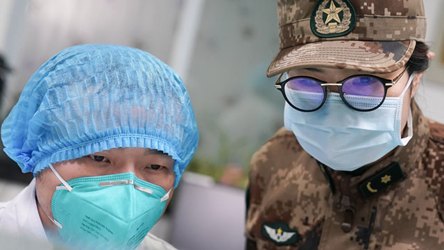 1月26日,在武汉市金银潭医院,陆军军医大学医疗队在搬运物资。新华社记者 程敏 摄